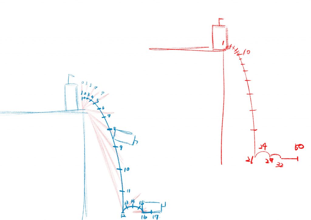 This is a sketch plan for Juice box animation. Especially, I wrote two graphs here like Full of Juice box and Empty Juice box. In terms of this sketch plan, I focused on the timing and space to express each material and weigh. Also, through this plan, I realised that heavy version is more smaller space each frame than light version. Furthermore, movement is also different between heavy one and light one. For example, heavy one is just bounce small only once. On the other hand, light one is three times bounce and movement is also big.