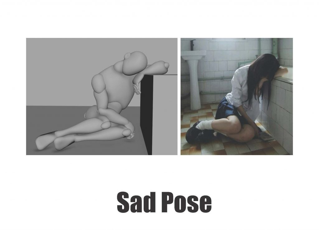 This week, I tried to create poses using a complex body model. As a result, I struggled to adjust each bone and understand the functions properly. Recently, I have been thinking a lot about body expression, because these characters don’t have facial features, so it’s essential to show emotion only through body gestures.